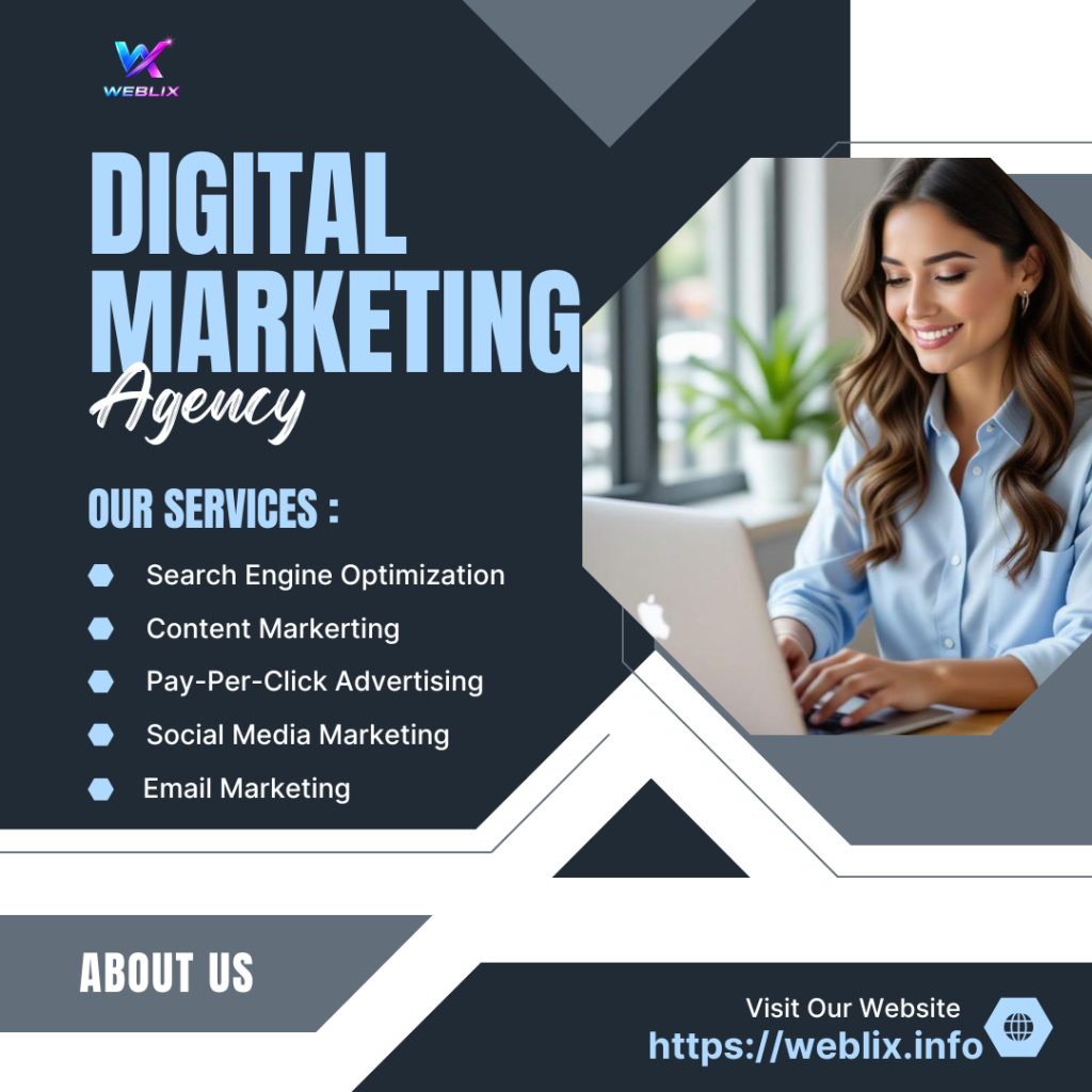 At Weblix, we help businesses grow, scale, and succeed in the digital world through powerful marketing strategies and creative solutions. We are a results-driven digital marketing agency focused on building strong online presence, increasing brand visibility, and generating real business growth.